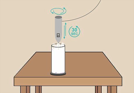 Swirl the wand in a circular motion for 30 seconds. Keep the head of the wand near the bottom of the carafe as you begin whipping the foam. You will see bubbles forming.