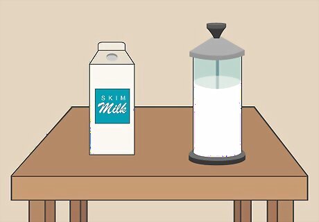 Use skim milk if you’re new to frothing. Swap in skim for higher-fat milks as you learn how to froth milk. The chemical structure of skim milk is better at holding foam at room temperature. As a shortcut, you can use whatever type of milk you prefer for your drink and then spoon skim foam on top.