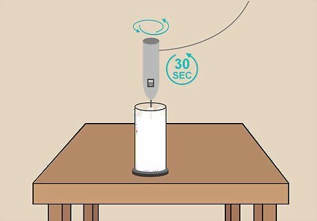 Hold your frothing wand vertically with the head inserted in the milk. Check that the head of the wand is fully submerged in the milk, and turn the wand to on. If the wand has multiple speeds, turn it on high.