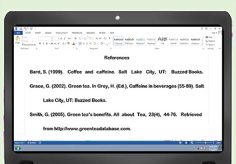 Write your reference page. The last part of your paper is the reference page. On the reference page, use hanging indention, which is where the first line is all the way to the left on each reference, but the subsequent lines are indented. Alphabetize the page by the author’s last name.