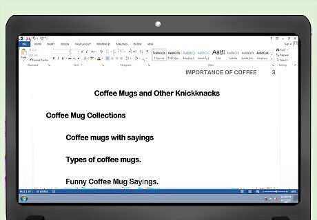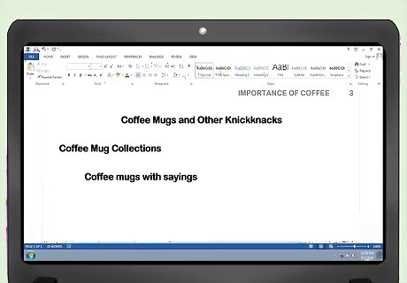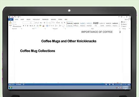 Divide your paper into major sections using level 2 headings. They should be bolded, in title-case capitalization, but aligned to the left: Coffee Mug Collections