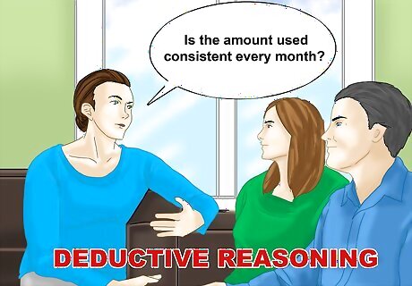Use deductive reasoning to solve a company problem. You can apply deductive reasoning in your workplace by using it to solve a company wide issue or problem. This logical approach can lead to smarter business practices and higher cost savings, as there will be less guessing and uncertainty around the problem or issue. For example, your company may have difficulty determining how many flats of printer paper to order every month for the office. You may decide to apply deductive reasoning to this issue. First, you will start by asking several general questions: How often is the printer used each month? How many flats of printer paper did the office use every month for the past four months? Is the amount used consistent every month? Second, you can use the answers to your general questions to form a deductive argument. If the printer is used every day, fifty times a day, on a constant basis each month, and if the office used an average of 50 flats of paper a month, you can then deduce that there should be an order of 50 flats of paper per month for the office. You have used information to form a premise (50 flats used on average a month) and then formed a deductive argument based on the premise. You can then place the order and note if the paper lasts for the full month. If so, you can continue to order 50 flats of paper every month. If the paper runs out before the end of the month, you may need to adjust your premise and your deductive argument. However, the logic of your argument is based on a high probability of truth in the premise and will likely be proven true.