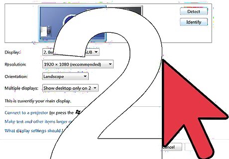 Right click on your desktop and select properties. Choose the settings tab. Two square boxes representing your monitors are shown. Your primary monitor is labeled 1 and the Secondary or external monitor is 2. Monitor One is highlighted by default.