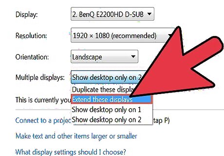 Click on the external monitor 2 to highlight it, then check the box beside “Extend my windows desktop onto this monitor" and click OK.