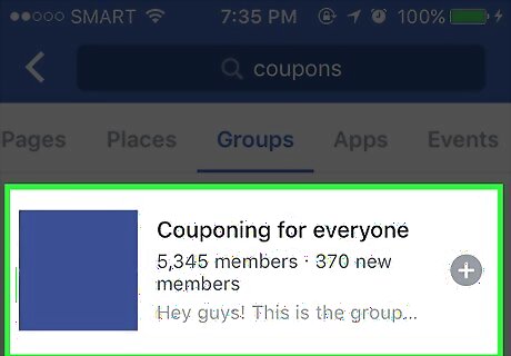 Browse the group list. Look for names that indicate a group is for sharing or trading coupons. If you see “Public Group” beneath a group name, that means you can click or tap the group to browse its coupons without joining. If you see “Closed Group” next to a group, you’ll have to join this group to view its coupons. Most coupon groups are closed.