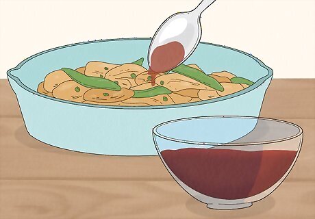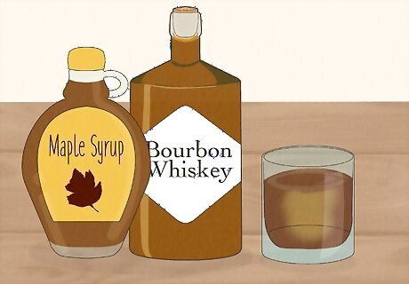 Make chicken dishes with a sweet twist. Create a maple-bourbon sauce for a classic chicken fajita dish by combining garlic, ketchup, maple syrup, bourbon, soy sauce, apple cider vinegar, and brown sugar in a saucepan. Add 1/4 cup of vegetable oil to a saucepan over medium heat, and stir in 2 cloves of minced garlic. Cook until the garlic is lightly browned. Whisk in 1/4 cup of ketchup, 1/4 cup of maple syrup, 2 tablespoons (29.6 ml) of bourbon, 1 tablespoon (14.8 ml) of soy sauce, ⁄2 tablespoon (7.4 ml) of apple cider vinegar, and ⁄2 tablespoon (7.4 ml) of brown sugar. Bring the heat to low and simmer the sauce until thickened.