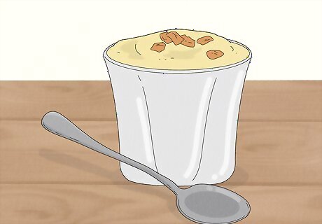 Balance tartness and maple sweetness with fruity treats. Combine maple syrup with mangos and pineapple for a tofu-based tropical pudding. Puree 2 tablespoons of maple syrup, 24 ounces (680 g) of silken tofu, 2 peeled, pitted, and cut mangos, 1/2 teaspoon of vanilla extract, and 1/8 teaspoon of salt in a food processor until the mixture is completely smooth. Transfer it to a large bowl. Chop 1/2 of a large pineapple into 1/8-inch (0.32 cm) pieces, and fold them into the pudding. Cover the mixture and refrigerate for at least 30 minutes. Cook 3/4 cup of unsweetened and shredded coconut over medium heat in a large skillet until golden brown. Remove from skillet and let it cool. Spoon the pudding into bowls and top it with the toasted coconut.