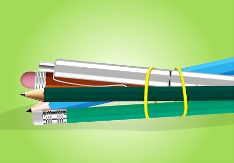 Organize desk items by holding them in place with rubber bands. Eliminate clutter on your desk at home by gathering up all of your pencils and pens and wrapping a rubber band around them to hold them all in one place. This can also be done with other desk items like index cards, manila folders, and loose papers.