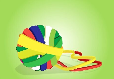 Make a rubber band ball. Use a small, round object or a folded thick rubber band to start the rubber band ball. Wrap rubber band around the core continuously until you have a smooth, round surface of rubber bands. The ball can now be bounced, tossed, or squeezed!