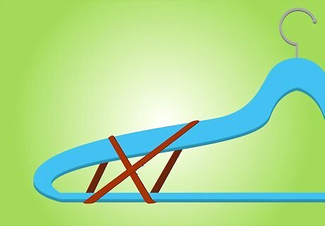 Add rubber bands to the ends of hangers to keep shirts from slipping off. Wrap rubber bands on both ends of the hanger. This gives the hanger some grip and keeps slippery clothing items from falling.
