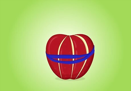 Secure apple slices together with a rubber band to prevent browning. After slicing apples to pack in your lunch, put the apple back together and secure the slices with a rubber band. This will keep your apple slices fresh until you’re ready to eat them.