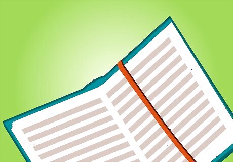 Bookmark a page with a rubber band around the page. Wrap a rubber band around the page you are on and the cover of the book to make a makeshift bookmark.