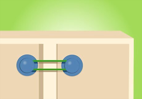 Childproof your cabinets by keeping them closed with rubber bands. Wrap a rubber band around the two knobs on each cabinet door so small children can’t get into the cabinet. Make sure to use thicker, tighter rubber bands so children are not able to open the doors at all. Looser rubber bands may allow the doors to open a little ways and lead to fingers getting pinched.