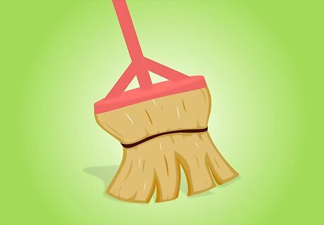 Secure frayed broom bristles with a rubber band. When a broom starts to get old, the bristles tend to fray. To extend the life of your broom, wrap a rubber band around the bristles, approximately halfway between the top and bottom of the bristles. This will get the bristles pointing in the right direction and improve the efficiency of your broom.