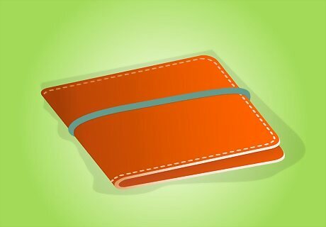 Create a makeshift wallet by wrapping a rubber band around your money. Create a makeshift wallet by wrapping a rubber band around your debit and credit cards and dollar bills. Alternatively, you can extend the life of a wallet that may be falling apart by securing it with a rubber band.