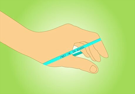 Write a secret note on a stretched rubber band, then unstretch it. Stretch a rubber band, write on it, then unstretch it. The words will not be legible when the rubber band is not stretched. Pass the note to a friend, telling them to stretch the rubber band to see the contents of the message.