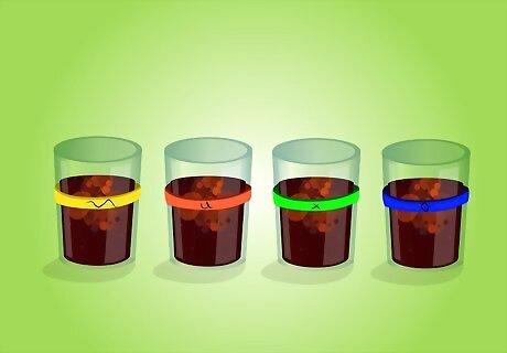 Mark cups with unique rubber bands at a party. When having multiple friends over, have each person slip a different colored rubber band over their can, glass, or cup so everyone knows which drink is theirs. To make the cup markers even more fun, purchase plain rubber bands and have each friend create their own design on their rubber band using markers. This method works best with thicker rubber bands.