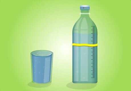 Motivate yourself to drink more water with rubber band trackers. Make a goal to drink a certain amount of water per day, then pair the goals with the rubber bands. For example, if your goal is to drink 100 ounces of water per day, put 5 rubber bands around your water bottle, one for every 20 ounces of water. Every time you drink 20 ounces of water, take a rubber band off your water bottle. Once all rubber bands have been removed, you have hit your water goal for the day.