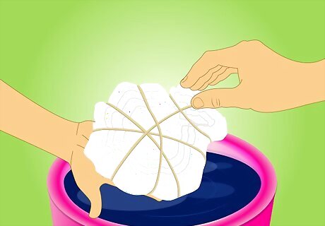 Create patterns when tie dying a shirt by wrapping it in rubber bands. Take a white t-shirt and create a design using rubber bands. This could include scrunching the shirt up into a ball and securing it with multiple rubber bands or rolling the shirt up and twisting it into a circle and securing with rubber bands. Proceed by dying the shirt. The rubber bands will create white marks within the color of the dye, creating a uniquely designed tie-dye shirt.