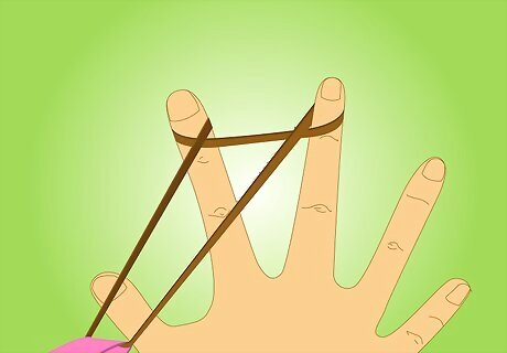 Shoot items with rubber bands. Fire a rubber band at empty plastic bottles, targets, or any other non-living thing. Make a game out of aiming for certain items and seeing who can hit the item first. Rather than shooting the actual rubber band, you can also use it to slingshot other items at targets.
