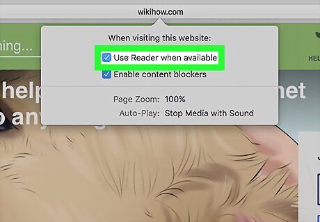 Click anywhere on the screen to close the pop-up. Now each article on the selected site should open in Reader mode, displaying the text without unnecessary distractions. Not all sites support Reader mode. For example, you usually can't view a news site’s main page in Reader mode, though it usually works for individual articles. To manage the sites that use Reader mode, click the Safari menu and select Preferences. Disable Reader mode for any site by selecting Off from its corresponding drop-down menu.