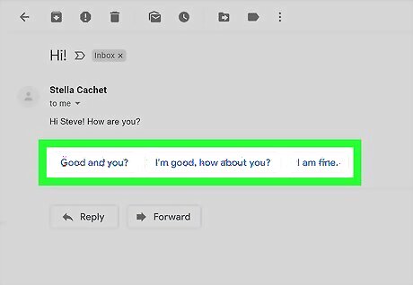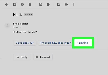 Check the available smart replies you can choose from. Your smart reply options are shown just above the Reply button at the bottom of the email message. Some emails may not have a smart reply option. In this case, you won't see any options here.