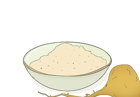 Take maca powder. Maca powder is made from the maca root. This powder claims to increase energy and help regulate hormones. It also may lower your blood pressure. Some people use it to boost fertility. This powder tastes sweet and malty.