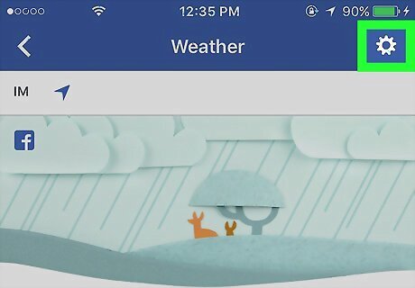 Tap the gear icon to edit your settings. It's at the top-right corner of the screen. Tap Add Location to have Facebook Weather show conditions for another area. If you want Facebook to send daily weather updates to your iPhone or iPad, slide the “Notifications” switch to the On (green) position. Select either Celsius or Fahrenheit under “Units” to change the way temperatures are displayed.