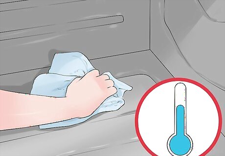 Wipe down the cooled oven. Wait until the cleaning cycle is completely finished, the oven is cooled, and the door lock is disengaged to open the oven. Wipe down the inner surfaces of the oven with a damp cloth to complete the cleaning process. The high temperatures of the pyrolytic cleaning cycle carbonize food matter in the oven until it turns to a light ash, not unlike that from a cigarette or campfire. This makes it easy to sweep out with just a cloth. For after a steam-clean cycle, simply use a damp cloth to remove the softened and loosened food material from the surfaces of the oven.