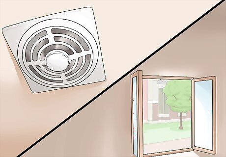 Ventilate the area well. Keep air flowing in the kitchen where you will turn on the self-cleaning oven feature. Turn on the vent fan on an oven range and open available doors and windows. You will notice an unpleasant odor from your oven once it reaches high heat for the cleaning cycle. This is due to the heating of the pyrolytic coating, as well as the burning food material. You can also consider setting up a fan faced toward an open window or door to help pull the smell from the oven outdoors. Do not perform the self-cleaning function on your oven if you don’t have these ventilation options available. Your kitchen can fill with smoke and fumes, set off smoke detectors, and become very overheated.