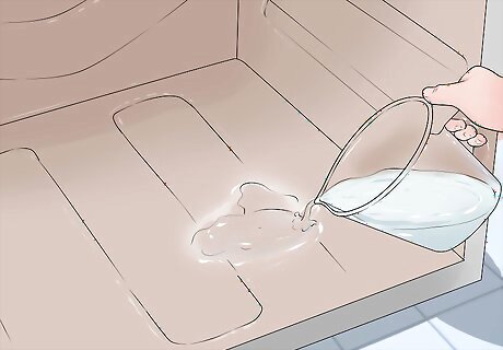 Pour water into the bottom of the oven. Use about a cup of water to pour into the bottom of a cooled oven with a steam clean feature. Consult your owner’s manual on the exact amount of water to use for your oven model. Note that this method should only be used for an oven with a “steam clean” feature built in. Do not pour water into the bottom of an oven before engaging a regular pyrolytic cleaning cycle, or in an oven that has no self-cleaning feature at all. Run a steam clean cycle after a recent food spill, and regularly, for the best results.