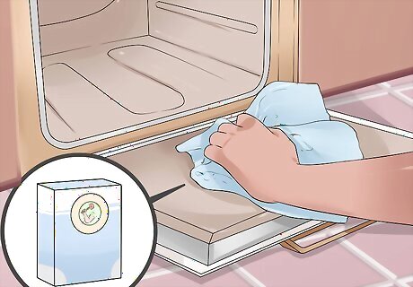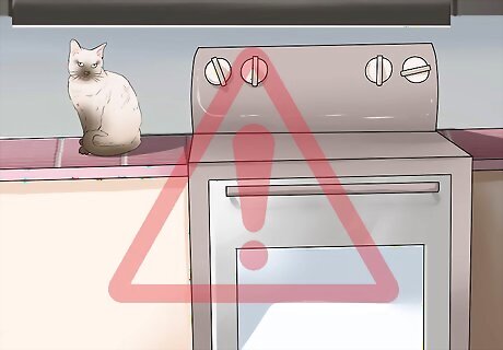 Take pets away from the area. Remove pets from the kitchen vicinity or the house itself before you start a self-cleaning cycle on your oven. Take special care with birds, who are particularly susceptible to harm from this process, by removing them from the house completely. Note that pet birds are easily harmed and killed by inhaling the fumes that come from the pyrolytic coating on self-cleaning ovens, as well as many other nonstick kitchen items containing a substance known as PTFE. While humans and other pets are less susceptible for toxicity from this chemical, they can also experience irritation from PTFE fumes while running the cleaning cycle. Pets should be kept on another floor or removed area of the house for safety, and humans should also try to stay away, except to monitor the progress of the oven cleaning.