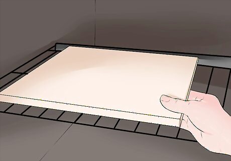 Remove objects from the vicinity. Take out all removable objects from the inside of your oven, as well as on top of it and below it, just to be safe. This would include any stainless steel oven racks, thermometers, cooking stones, etc. Do not forget to remove any and all items from the warming tray below your oven, if you have one. Some oven racks are also coated with the pyrolytic material needed for self-cleaning and are thus intended to remain inside the oven for the cleaning cycle. Standard stainless steel racks should typically be removed. Consult your model’s manual to be sure of this. If desired, you may clean any baking or cooking stones, thermometers, or oven racks you remove separately as the oven goes through its self-cleaning cycle, particularly if there are stubborn stains or debris stuck on them.