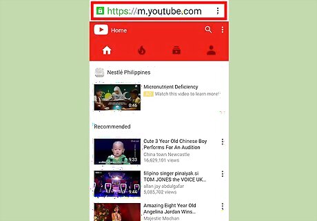 Visit the YouTube website in your browser. If you want to save videos to watch later on Android, the easiest way is to use a YouTube downloader website. To use these, you'll need to address of the video you want to download for later.