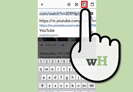 Copy the video URL (address). Press and hold the address in your browser's URL bar. Select "Copy" from the menu that appears. The copy button may look like two squares overlapping.