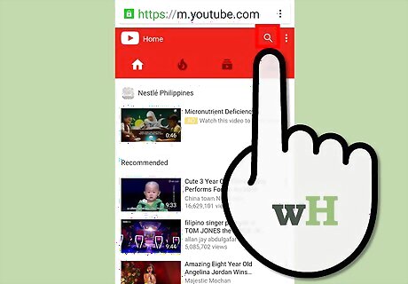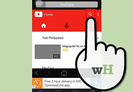Search for the music video you want to save. YouTube has a search function that is accessed by tapping on the search button in the upper right corner of the main app screen. Type the name of the video in the text field that will appear, and then tap on the relevant search keyword that appears at the bottom of the text field. You may also use the side panel, accessed by swiping inward from the left edge at the main app screen, to browse through your subscriptions if you wish to search that way. Tap “My subscriptions” in the left panel to browse the recent uploads by the channels you've subscribed to. You can also use the “History” in the side panel to look through your recently watched videos. You can only save music videos using this method.