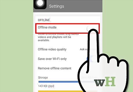 Connect to a mobile network. To save a video, you'll need to be connected to a network first. Once the video has been saved for offline viewing, you'll be able to disconnect and watch it offline. If you do not have access to a Wi-Fi connection, you can use data connection if your device supports it.