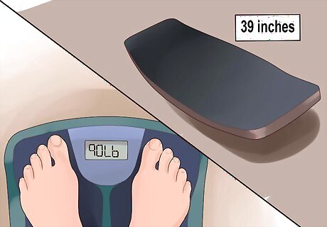 Choose the right size for your weight and skill level. Board size is always measured in inches, and the size you buy depends on you as a skater. Lighter boards move slower but respond well to tricks, while bigger boards have more buoyancy and speed through the water. 39-41 inches: Riders who weigh 90-170lbs, beginners and intermediates. 42-43 inches: Riders who weigh 150-200lbs, intermediate riders. 44-46 inches: Riders who weigh more than 180lbs, advanced riders.