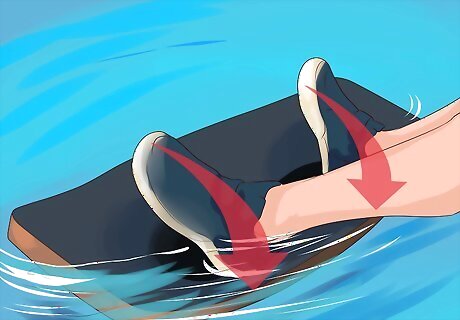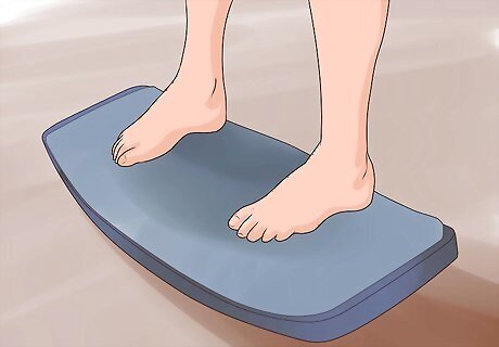 Place your heels on the board close to the edge. Your toes will be near the center of the board. Keep your heels on the board so that you could push down on them and flip the far edge of the board towards you if you wanted to. There will be 2–4 inches (5.1–10 cm) between the edge of the board and you heels.