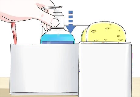 Organize your supplies for easy access. You will want to make sure your supplies are in a place that you can easily access while washing dishes. For example, you might want to place the sponge in a sponge holder that is on the back of the sink. You can position the dish soap right beside the sponge holder.