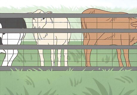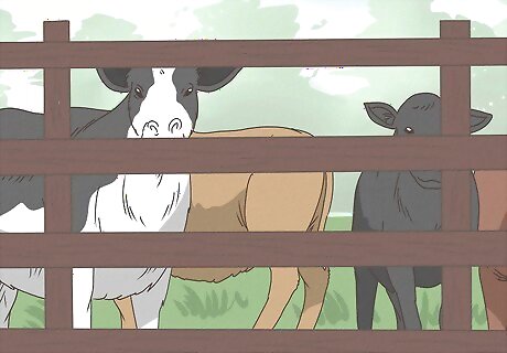 Prepare. Following the steps above in the sections "Preconditioning Calves Prior to Weaning" and "The Actual Traditional Low-Stress Weaning Process," separate cows from the calves into adjacent paddocks where they can see and possibly sniff each other but the fence does not allow any suckling to occur. Placing page wire and strands of electric wire on either side of the fence is a good way to keep from calves and cows from getting back to each other. Having a two-layered fence built may also help prevent the more desperate mothers from getting back to their calves.