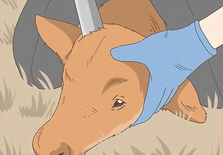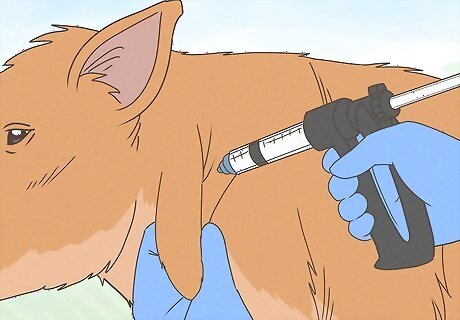 Provide immunization and boosters. Give calves their first immunization treatments while they're still nursing, and follow with booster shots as recommended by your veterinarian or the manufacturer of the vaccines. A herd-health program should have been established between you and your local large animal veterinarian so that you are prepared to give the calves whatever needs to be given in your area. Treat for internal and external parasites as well.