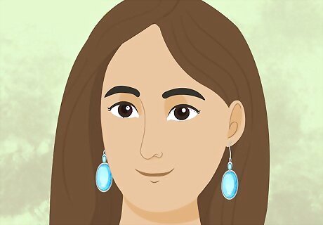 Wear opal earrings to draw attention to your face. Choose a bigger pair of statement earrings if you want your earrings to be the main piece of jewelry you wear or go for simple studs for a more minimalist look. If you want to coordinate with your outfit, pick a color from your clothes and match the earrings, or add in some fun contrast by mixing-and-matching colors and patterns. For example, if you’re wearing an emerald green top, bright red opal earrings would provide a great pop of color. Or, you could streamline your look with green-based opals. If you have milky white opals, they can be paired with almost any outfit.
