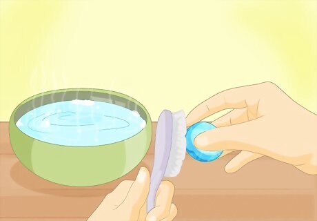 Scrub your opal with a soft brush and warm, soapy water to clean it. Fill a small bowl with warm water and 2-3 drops of dish detergent. Mix the water until it gets sudsy. Dip a soft brush in the water, then gently scrub your opal to clean off any dirt or grime. Rinse the opal with clean water and dry it with a soft cloth. Don’t use a hard-bristled brush, as it could scratch the sensitive surface of the opal. Clean your opals once every 2-3 months to prevent oil from building up.