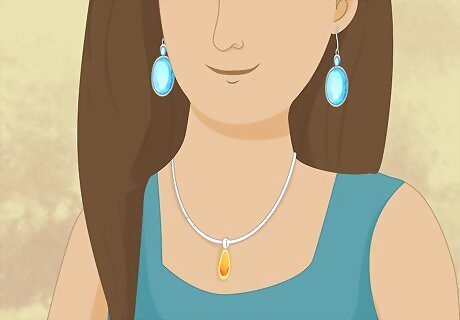 Highlight your neckline with an opal pendant. Most opal necklaces are simple pendants that highlight the gemstone itself. Some may have more intricate settings, but the benefit of these types of necklaces is that they add a lot of style and color with just a single gemstone. Longer pendants look fantastic with higher necklines as they tend to elongate your body. Try pairing a shorter pendant with a lower neckline to show off your jewelry.Did You Know? Some people believe opals increase creativity and passion and wear them to channel this type of positive energy. While there’s no science backing these claims, it can be fun to associate different pieces of jewelry with various emotions and desires.