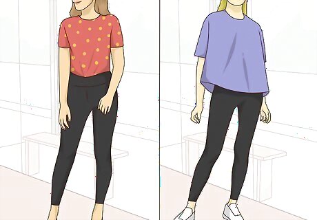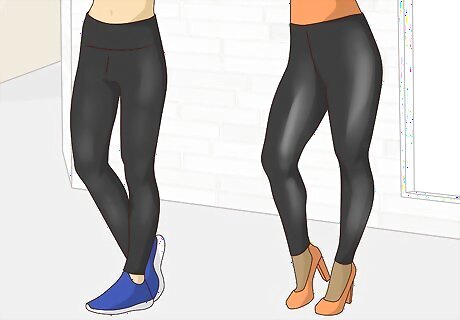 Make sure that the leggings fit you. Tight pants may be in fashion, but too-tight pants will never look good or feel comfortable. When buying leggings, try to do a few squats; you should be able to move around easily. If you are feeling self-conscious about certain parts of your body, such as a loose tummy or love-handles, consider getting a pair that offers support in those areas. They might be labeled as "control top" or "supportive."