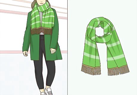 Add scarves, ponchos, and shawls for extra layering and texture. Leggings tend to look very plain, almost like a second skin. You can spice up your outfit by draping a shawl over your shoulders or wrapping a scarf loosely around your neck. This will add some interesting shapes and textures to your outfit.
