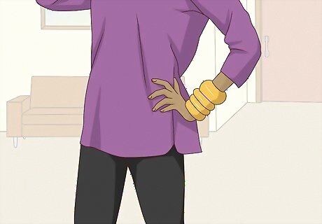 Add some jewelry. Try some necklaces or chunky bangles. Don't be afraid to layer your necklaces and bracelets. You can wear thin and thick bracelets, or long and short necklaces for a more interesting, layered look.