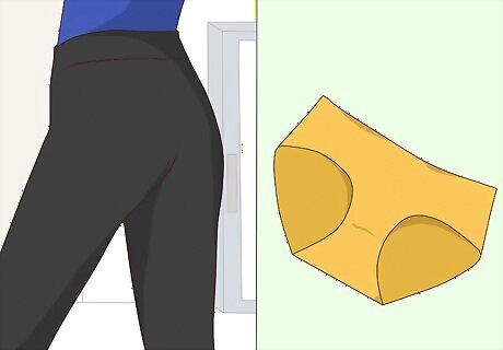 Wear the right underwear with your leggings. The wrong underwear may show through even solid-colored leggings. The two things you need to focus on are seam lines and color. Choose a pair of underwear that's either black or that matches your natural skin tone. Also, try to buy a pair of underwear without a seam line. They are often called seamless or something similar. You can also wear a black- or nude-colored thong.