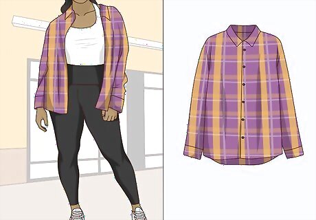 Choose a patterned or solid colored top. A top with a pattern, such as florals, will make you outfit more interesting. A solid-colored top will make your outfit look more subdued.